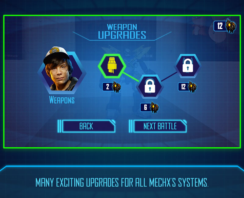 > Battle virtual monsters using 5 unique actions: "Mech-execute" to power up, Right punch, Left jab, Activate defense shields and Repair mode