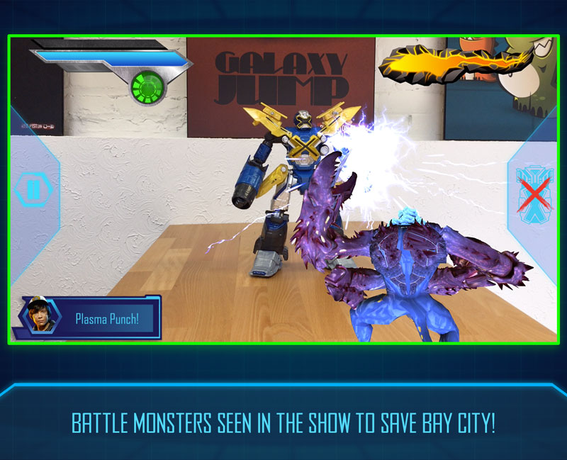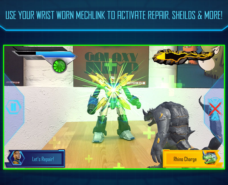The Disney Mech-X4 Robot AR Battle app allows you to:
